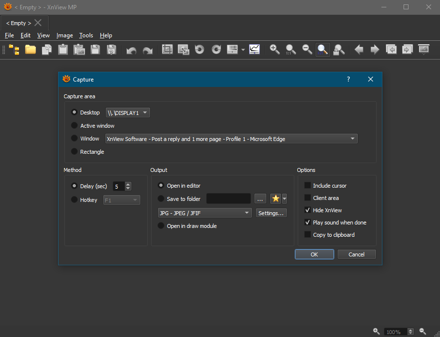 - Capturing a screenshot in XnView MP: Tools > Capture...