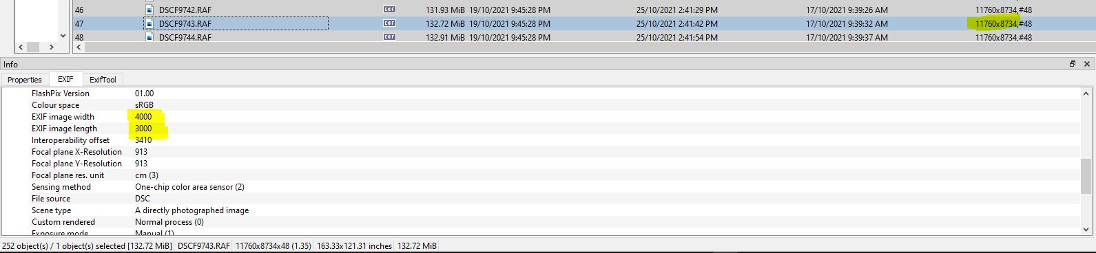 Another observation: Although the RAF images out of the camera are 11760 x 8734, the jpg out of the camera is