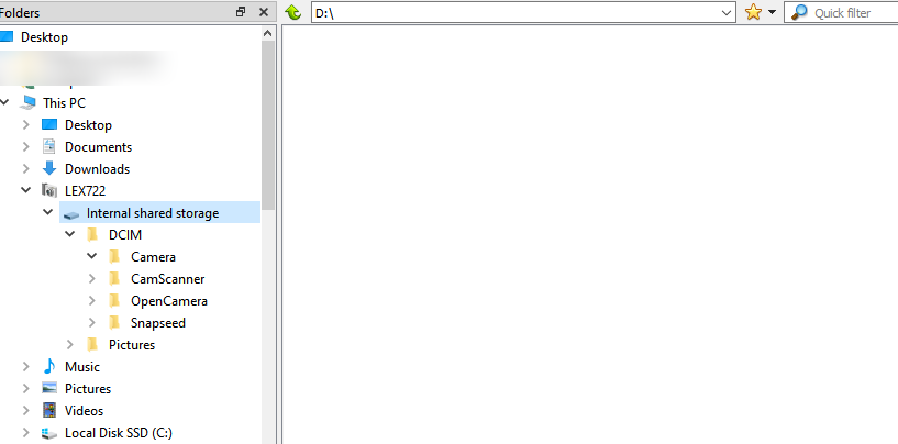 Same problem. XnView just doesn't show anything related to Android device that is connected, no folders, no files. Whether it's file transfer or PTP mode - there is just blank screen.