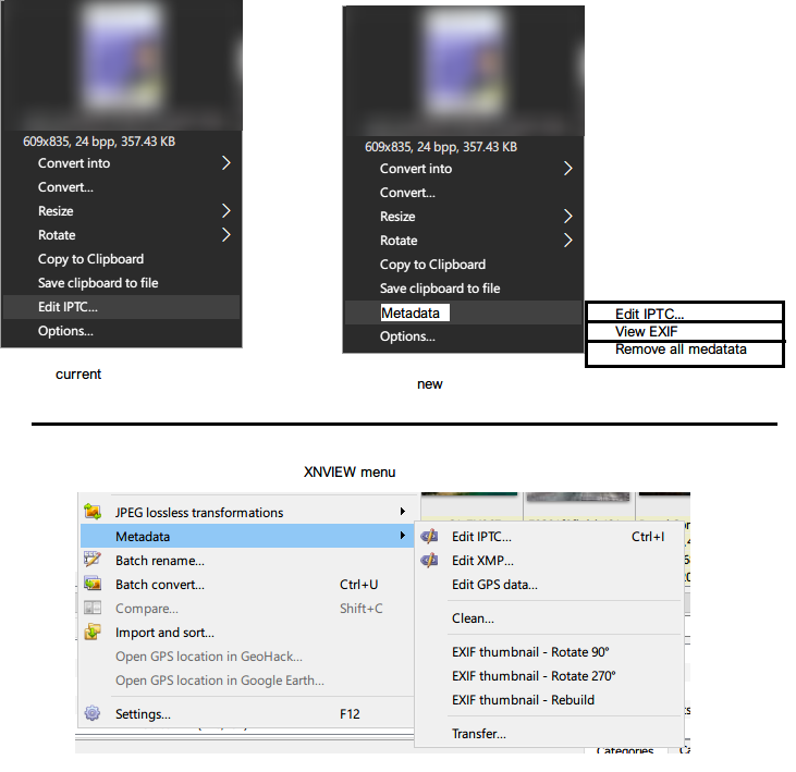 There is no metadata menu at all.. There are options to edit exif or iptc but no option to remove.