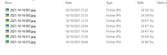 Par conséquent, dans le dossier 2023-08-29 avoir les fichiers nommés 2023-08-29 001.jpg, etc