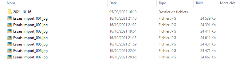 Je souhaiterais importer mes photos en les renommant avec la date de prise de vue + une numérotation qui correspond à l'ordre dans lequel elles ont été prises pour chaque jour (de la même manière que l'importation via l'explorateur de windows).