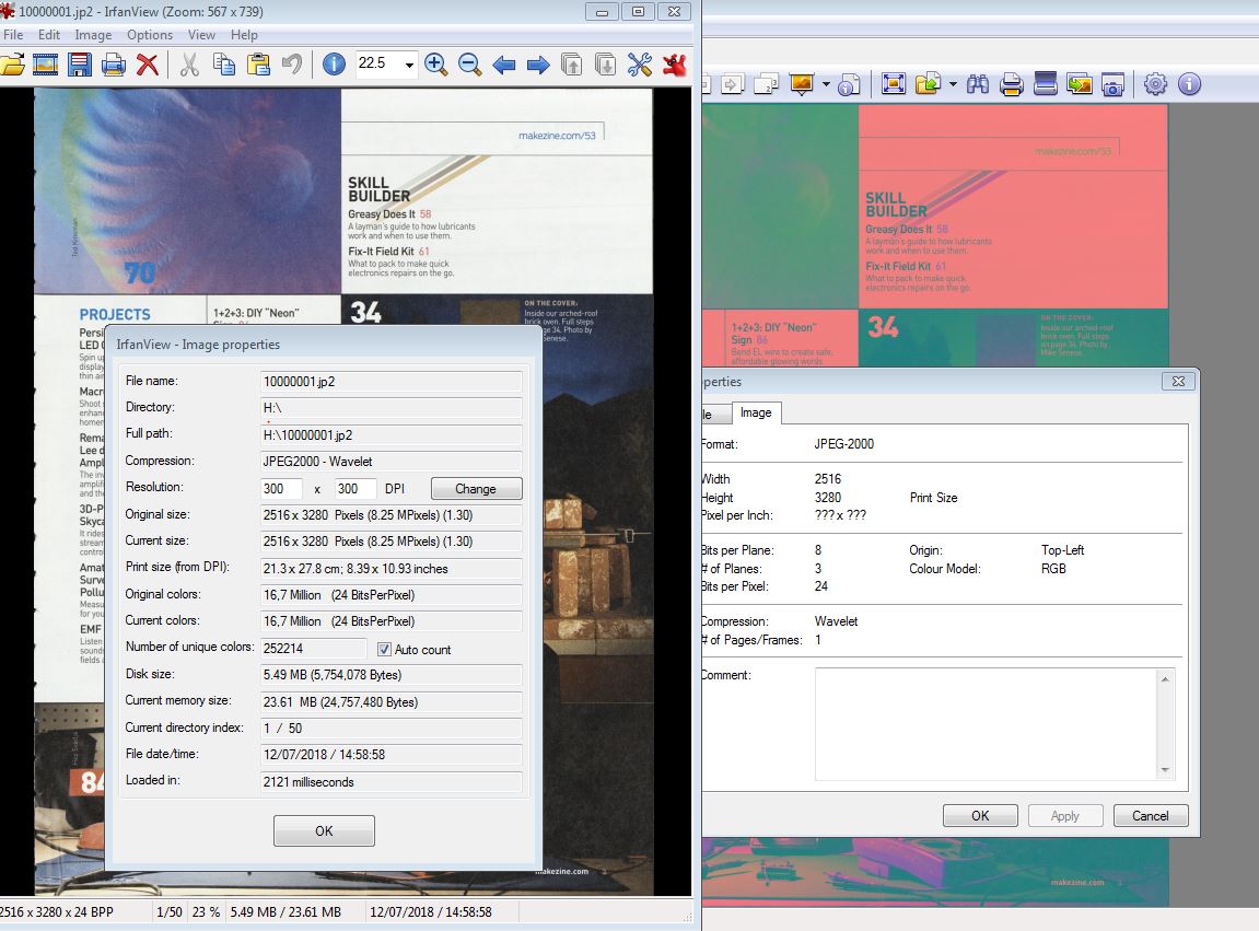 I am scanning a document and creating a Jpeg 2000 document. When I process the document in anothe rapplication I see the red tint to the document. ON opening this up in different viewers I either get a pure image or I see the image diplayed on the right of the attached file.