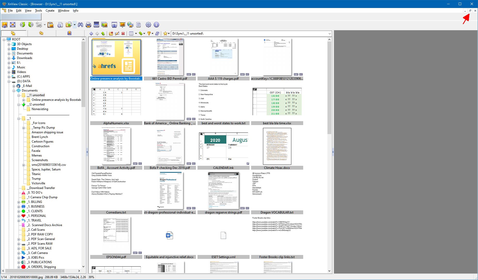 When I clicked on the right side of the menu bar on the "restore" (red arrow in pic: xnview1), this happened: (pic xnview2)