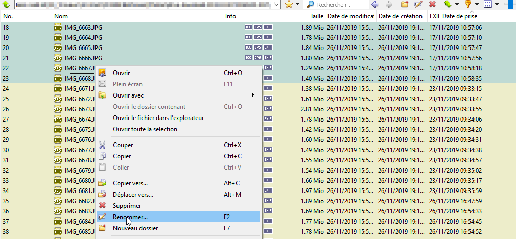 Je mets ce bémol, car comme j'ai modifié certaines dates de prise de vue via Xnview, je ne suis pas certain d'avoir balayé des dates modifiées ou non pour mon renommage.