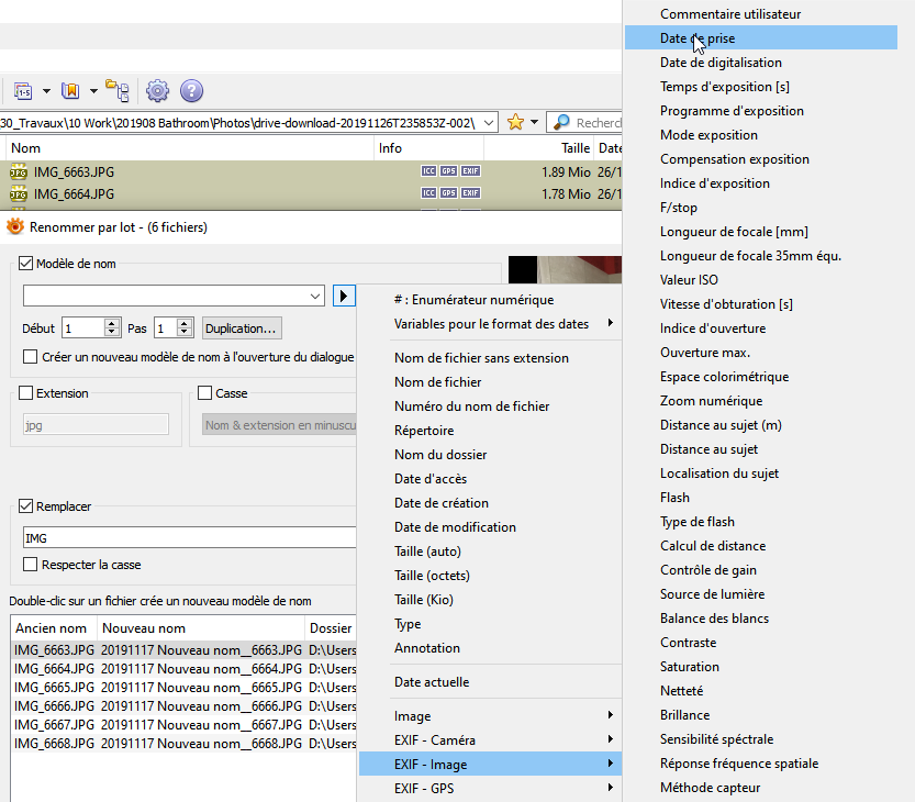 Je cherche à renommer mes images en ajoutant la date de prise de vue.