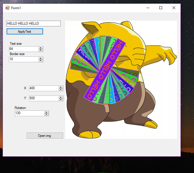 nconvert.exe -text_font "Comic Sans MS" 32 -text_color 32 255 85 -text_back 0 0 0 -text_flag top-left -text_pos 20 420 -text_rotation 10 -text "HELLO HELLO HELLO"