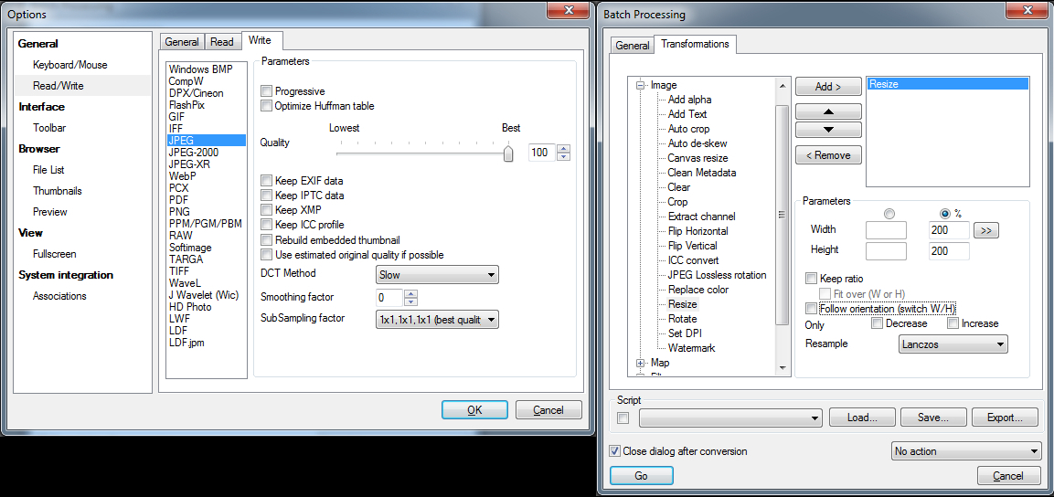 eli75 wrote:Question-Do I need to modify manually scripts generated by XnView, or XnView needs to generate PROPER scripts according to it's settings? Or-Why XnView seted on 100% quality generates 85% quality scripts?
