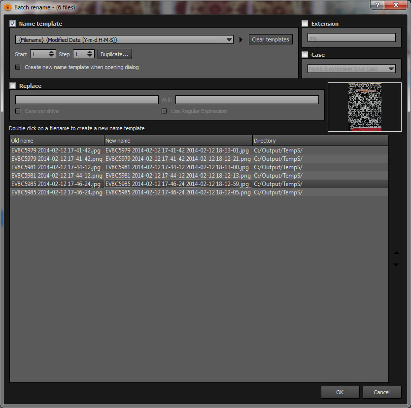 The Rename dialog has a very small thumb pane on today monitors, hence it is very hard for us to distinguish what's in there: