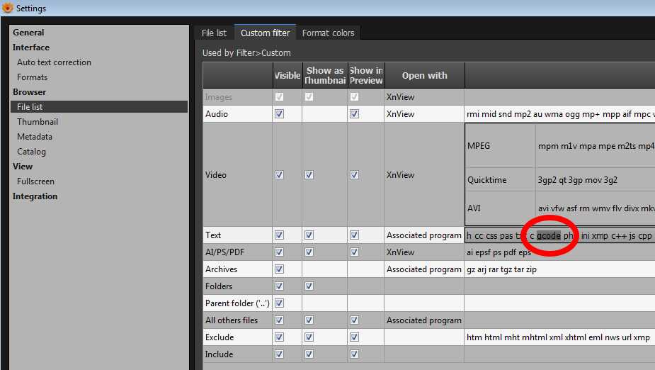 To "support" (note the quotes) G-code files is very simple (for the time being). These files are just text files, hence add in the default installation the gcode extension to the Custom Filter: