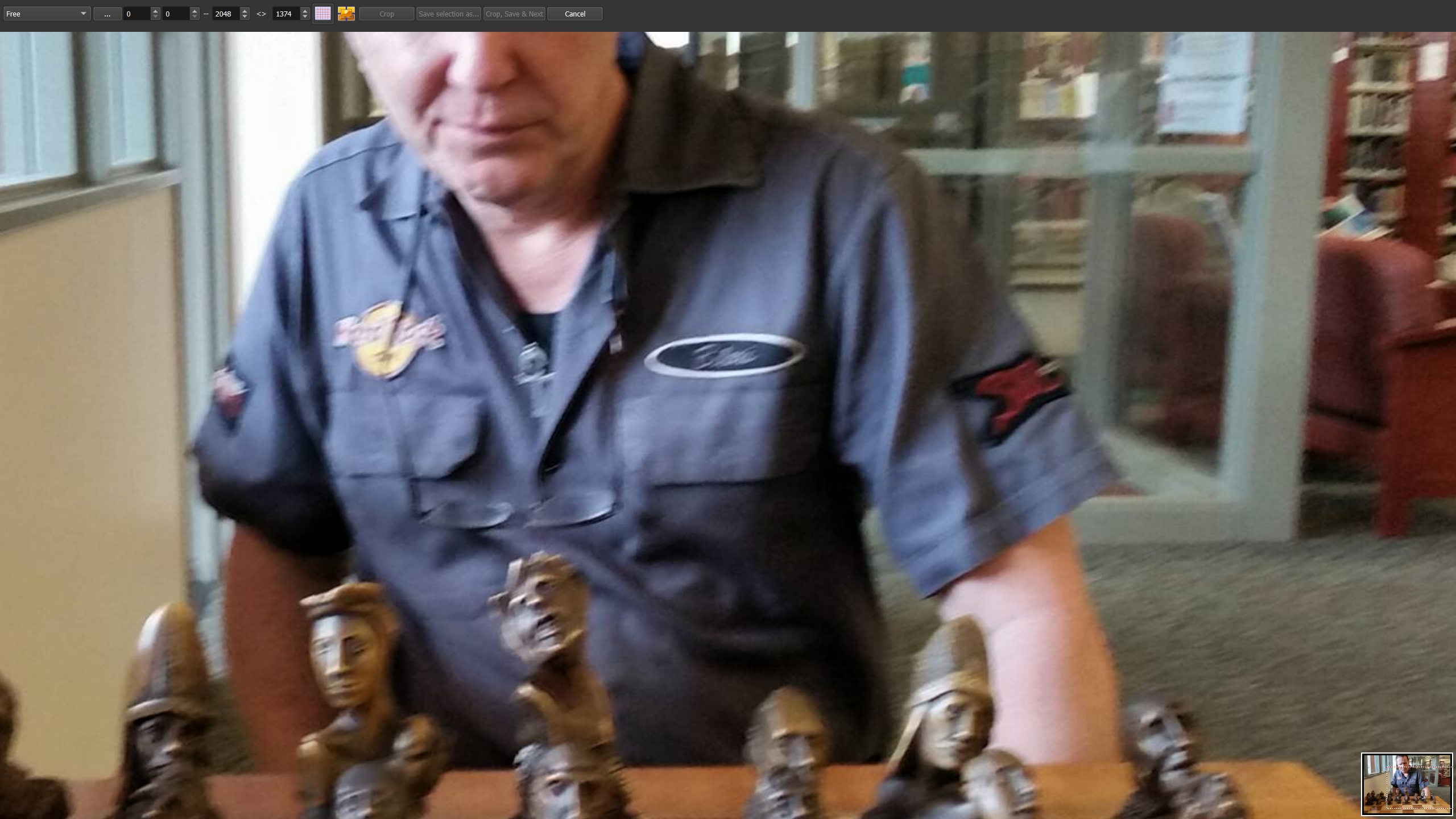 But the shortcut I'm suggesting is for use when you are in normal full screen viewing mode browsing through your new photos. As you zoom into a certain photo you suddenly realize, "Aha!". I should save a Crop of this photo exactly as I'm viewing it now... But there's no way to immediately do that inside Irfanviw or XnView, so you bail out of Full Screen mode and the program automatically resets you back to viewing that full photo on screen. Then you select the Crop Tool and try to remember exactly where it was zoomed to before in Full Screen mode. Finally, you get the crop square reasonably close to what you remembered was the "magic" crop from before. Then you finally can Save As...