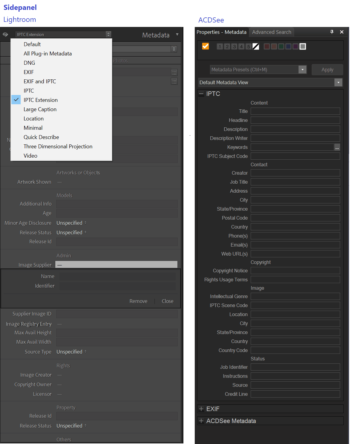 Merge all Metadata related dialogs in a single dialog and minimize use of tabs (see how Photoshops' dialog look much cleaner over GIMP's one).