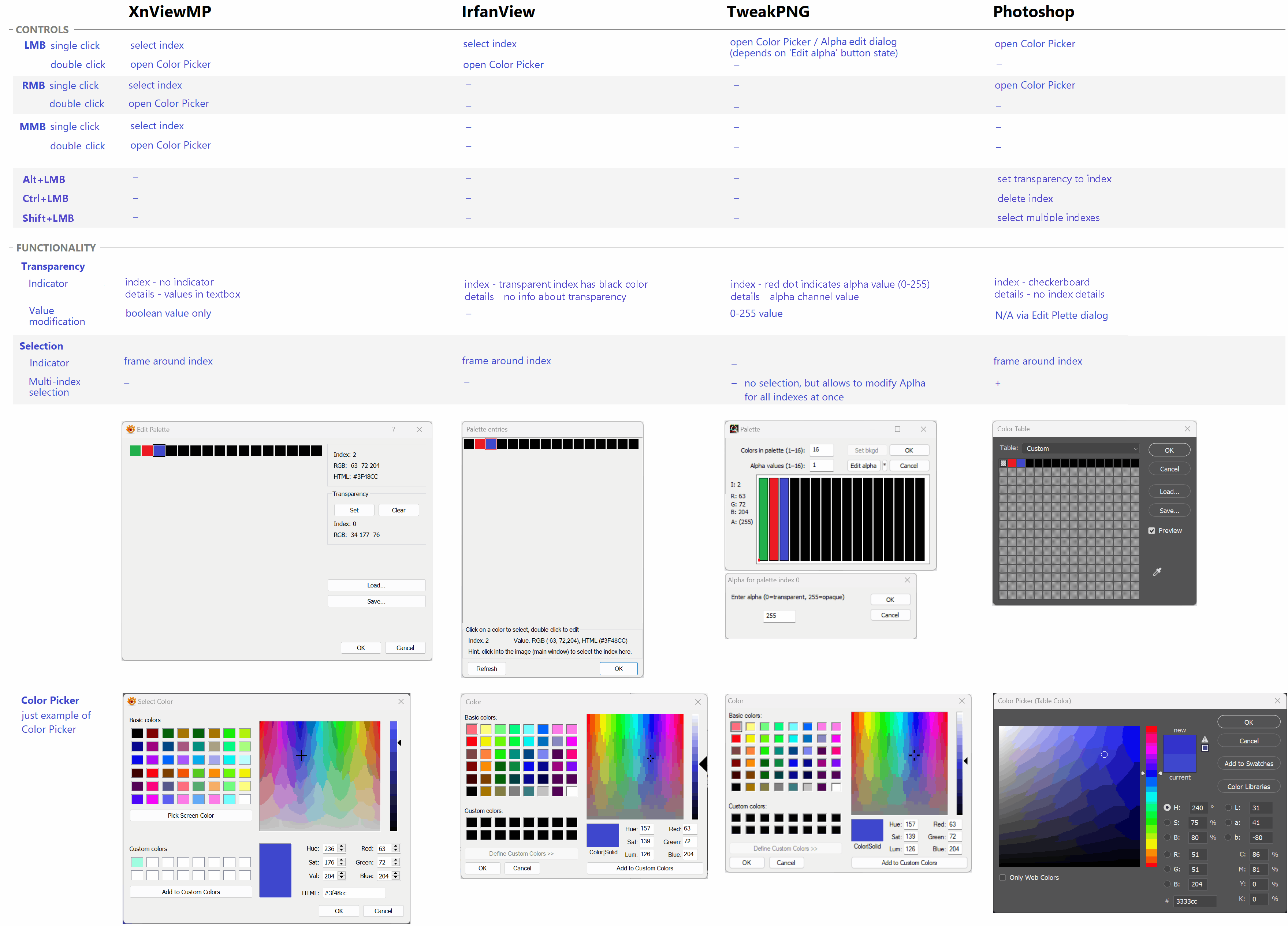 eg select multiple indexes via ctrl/shift+mouse/arrows and press enter to edit colors or del to delete indexes- set color/alpha