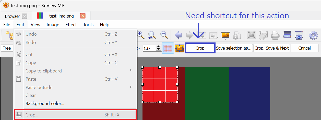 add default shortcut to perform crop, it can be: