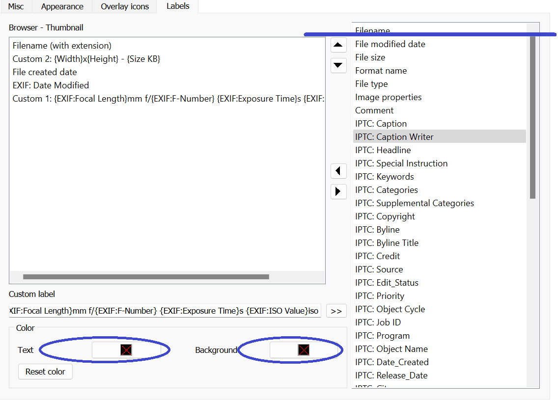 Re: Settings - Browser>Thumbnail>Labels tab - update ui
