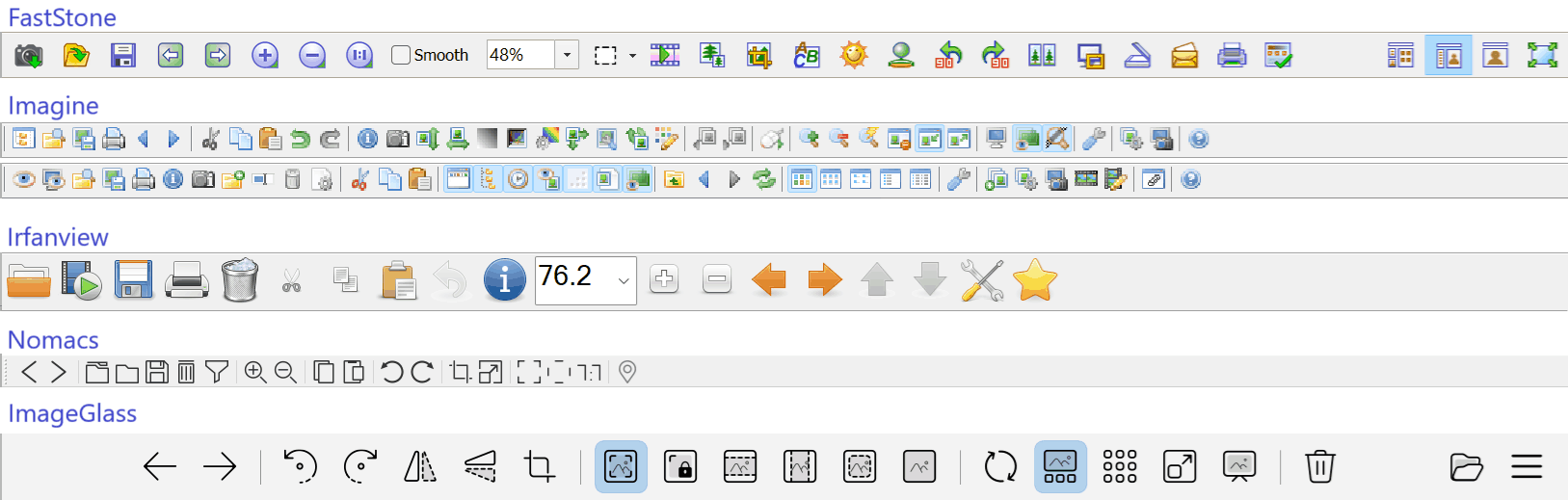 A better approach would be to try to harmonize the position/number of buttons among groups (eg file operation, image transformation, etc.) in both modes.