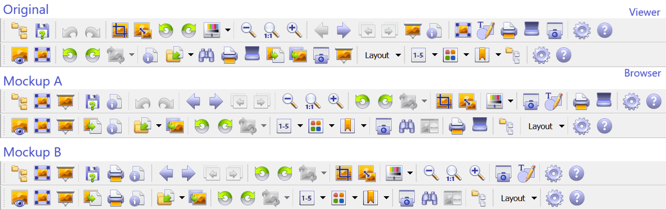 When switching between Browser and Viewer, the position of Rotate buttons looks very awkward.