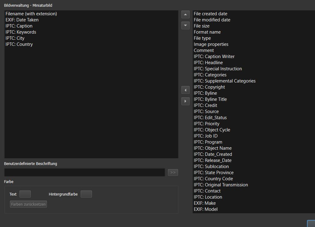 For the gallery, the metadata for the images can also be displayed individually in the options.