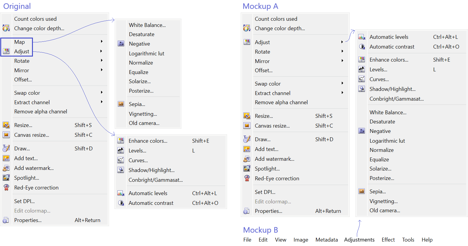 App UI - menu structure - Image - merge Map and Adjust groups