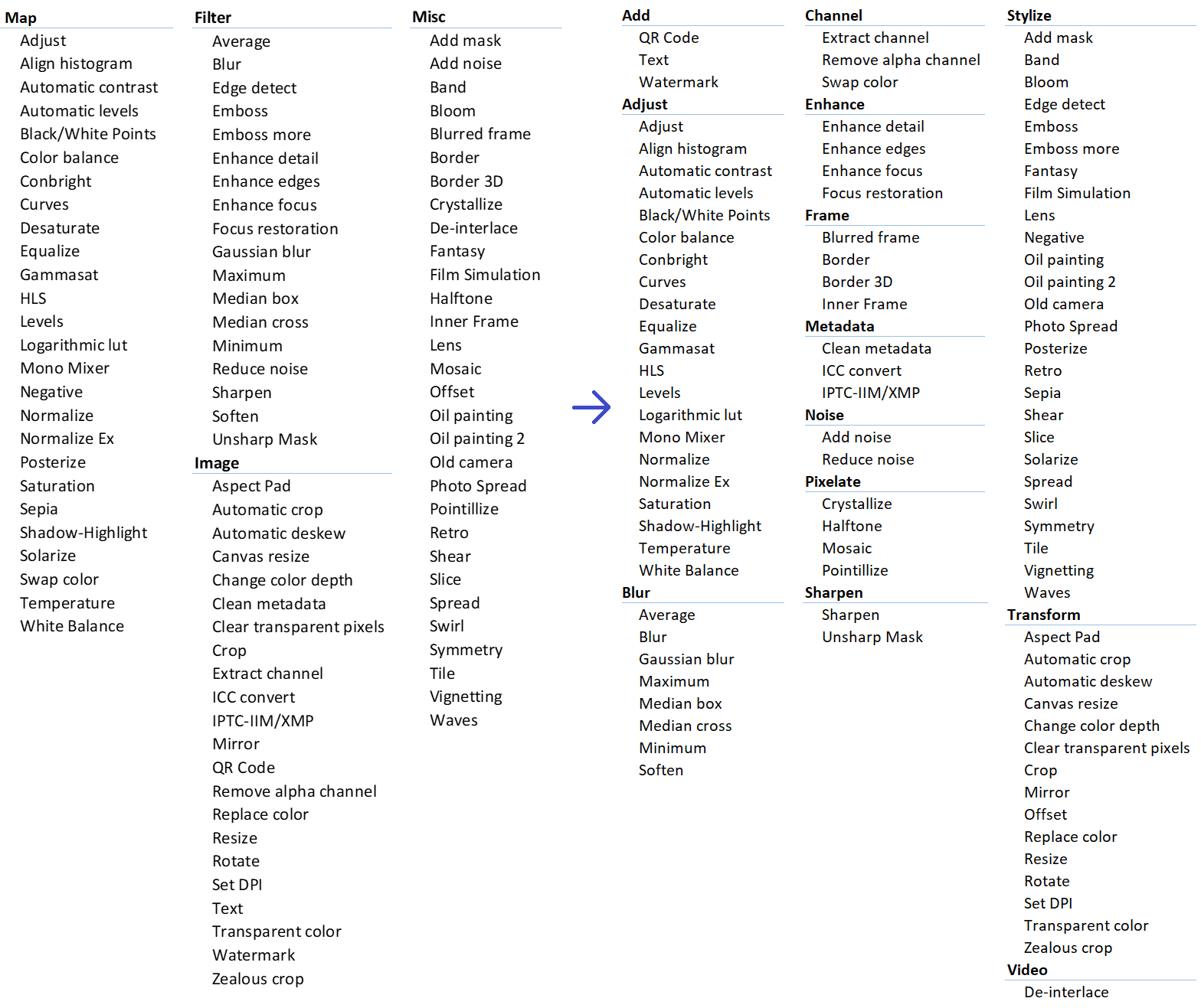 actions/effects groups in Batch convert and Effect dialog are not descriptive enough, which is inconvenient