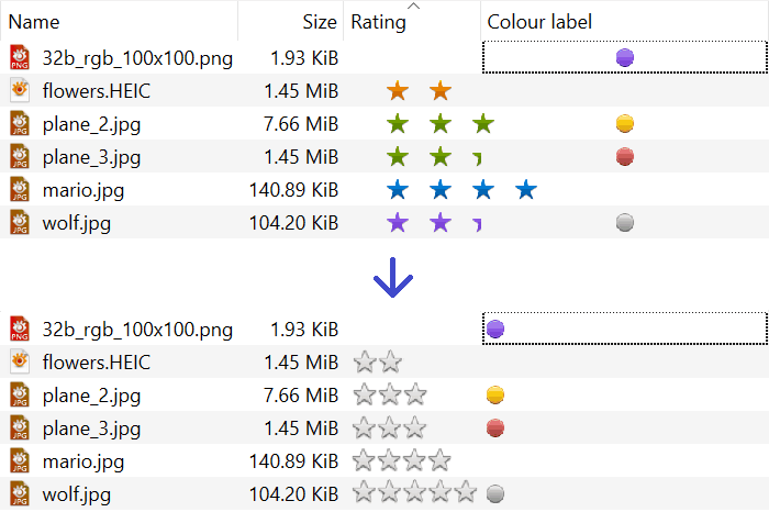 Re: Browser - filelist - details view - improve Rating, Color label appearance