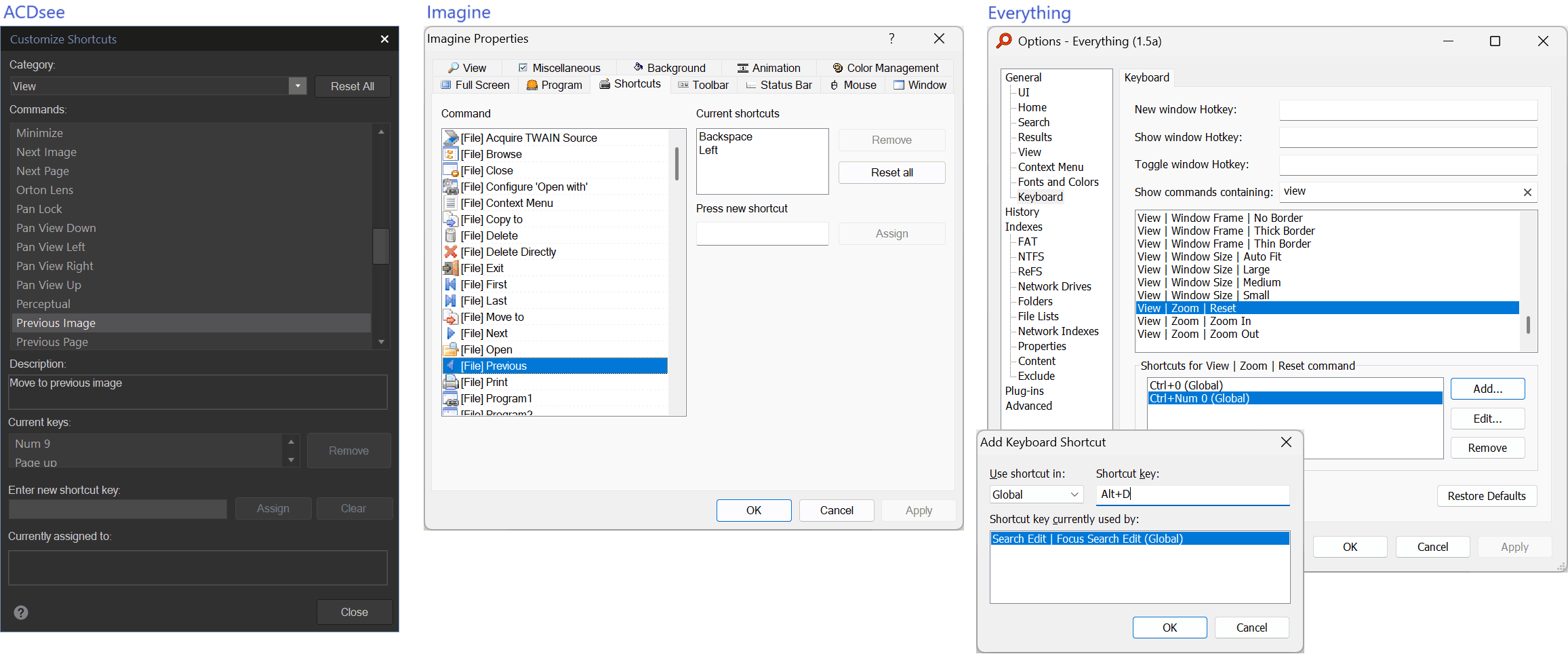 Shortcuts - bindings