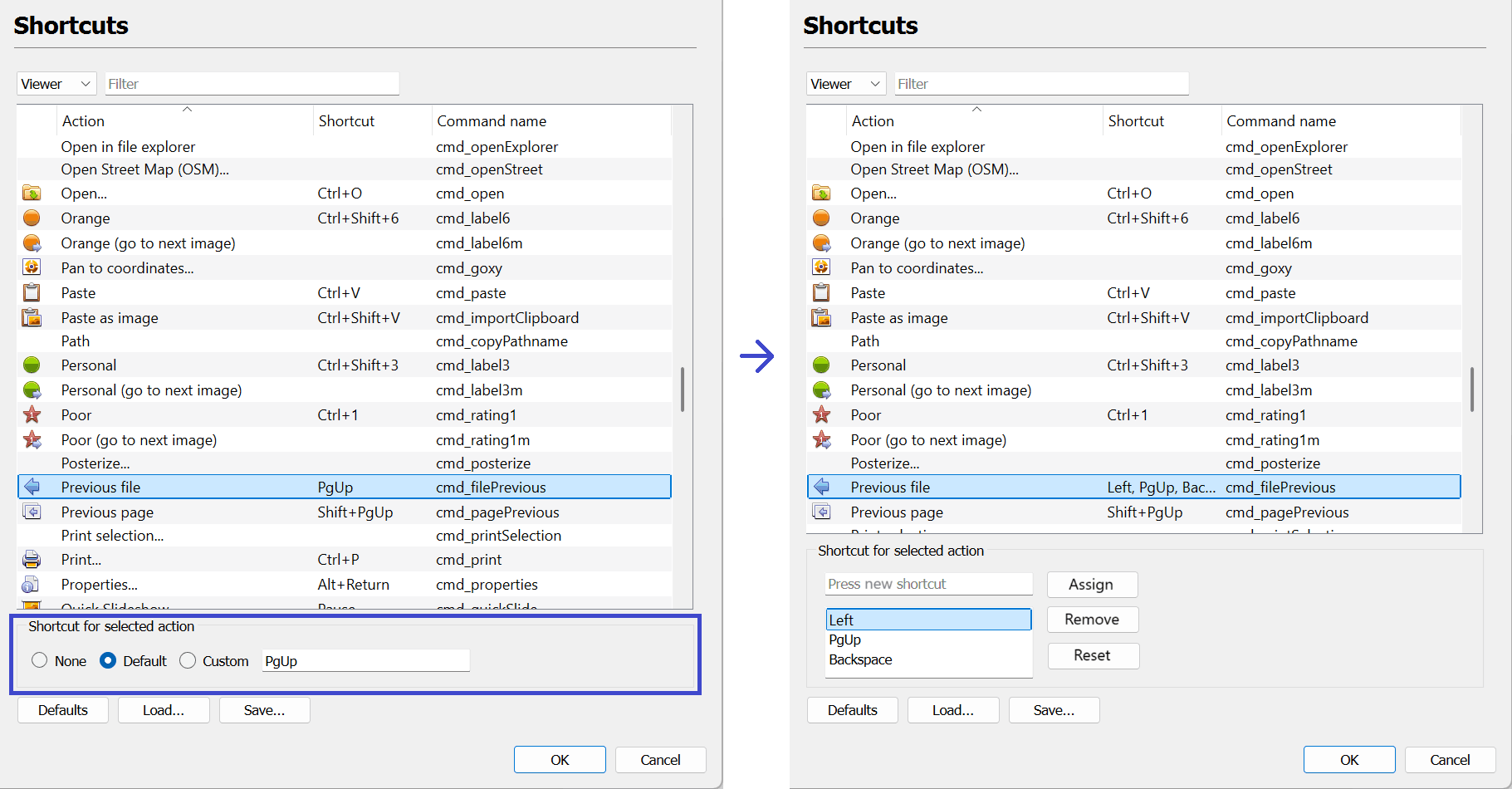 Shortcuts - general - add commands to increase/decrease rating/color label