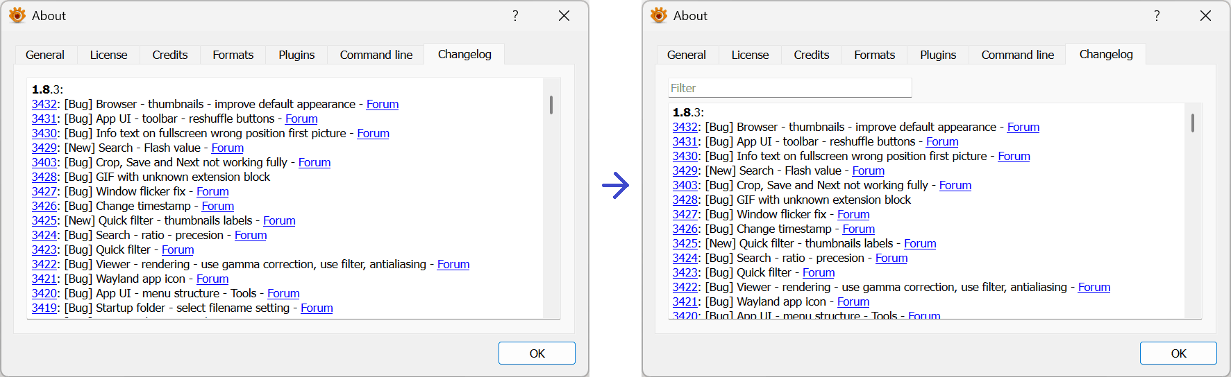 so its possible to filter changelog