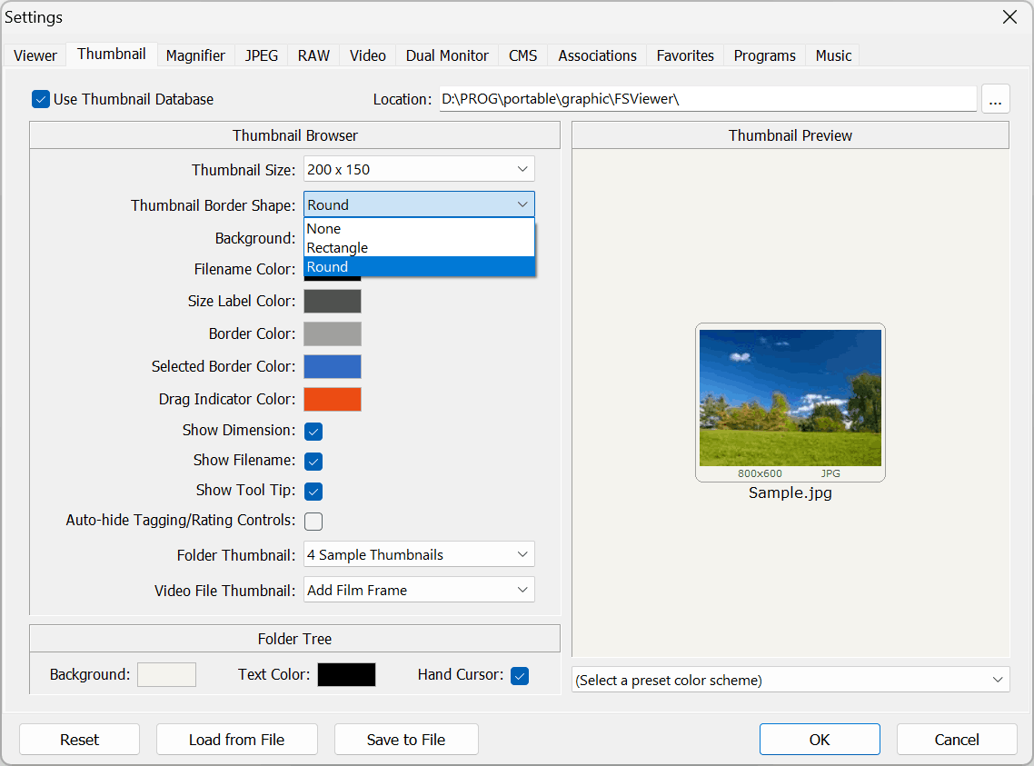 Settings - thumbnails - appearance