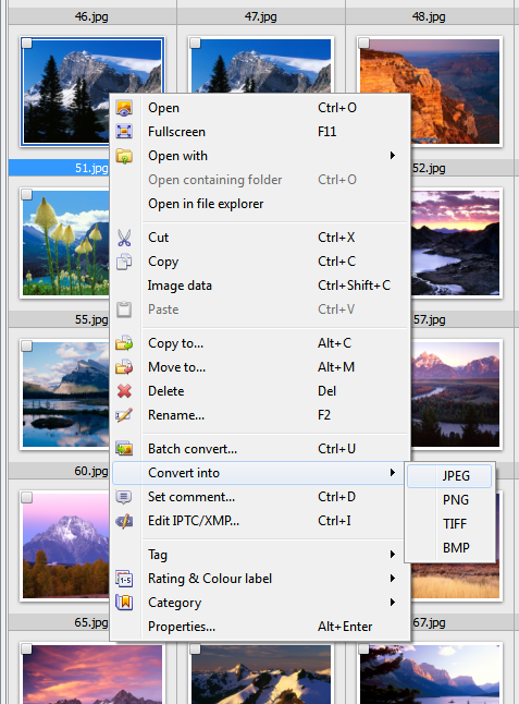 XnViewMP v0.69, converting to JPEG from context menu in the images browser, resulting jpeg is ugly regardless of specified format settings.