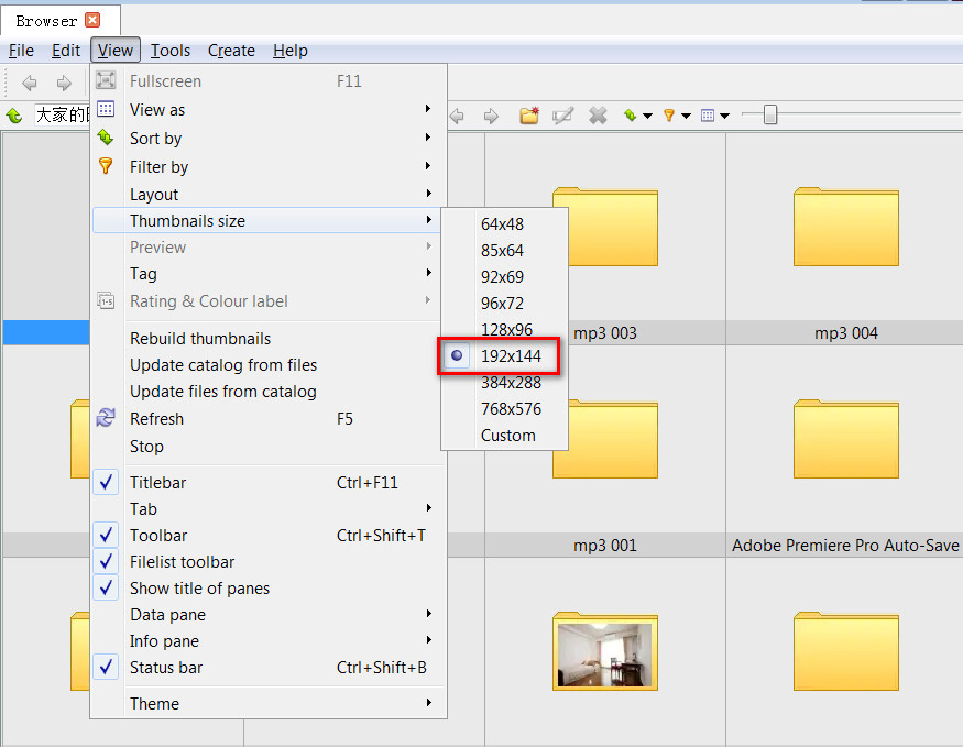 The XnView MP is great! But it has a problem: in the browser, when thumbnails size such as 192x144 in the view menu is bigger than the compression size such as 96x72 in the settings, it shows file thumbnails in size 192x144, however, it shows folder thumbnails in size 96x72 but not 192x144 , as shown in the figures below.