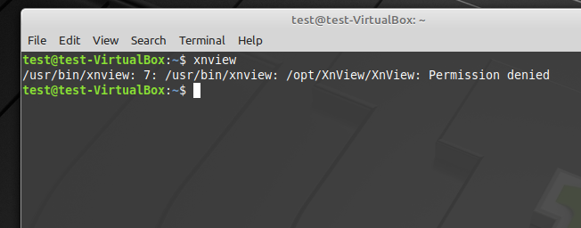 I have tried on a clean virtualbox image and from terminal I get this : I know how to solve it, but I'm not comfortable giving rights outside my home folder...