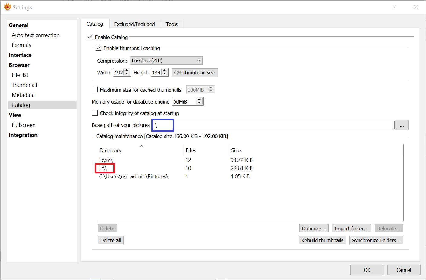 It adds extra backslash to all paths that automatically adds to the Catalog when 'Base path of your pictures' set to '\'.