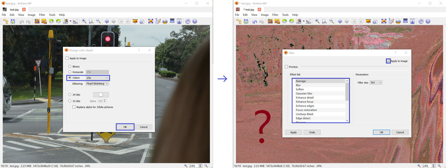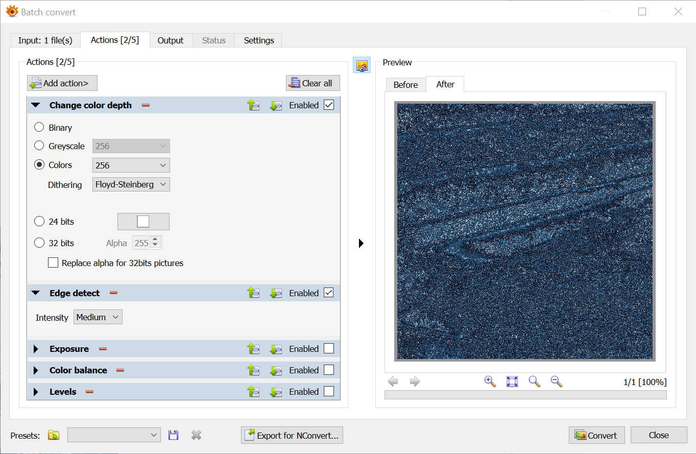 Re: 1.4.0 - viewer / batch convert - Change color depth to 8bit + Filter = mess