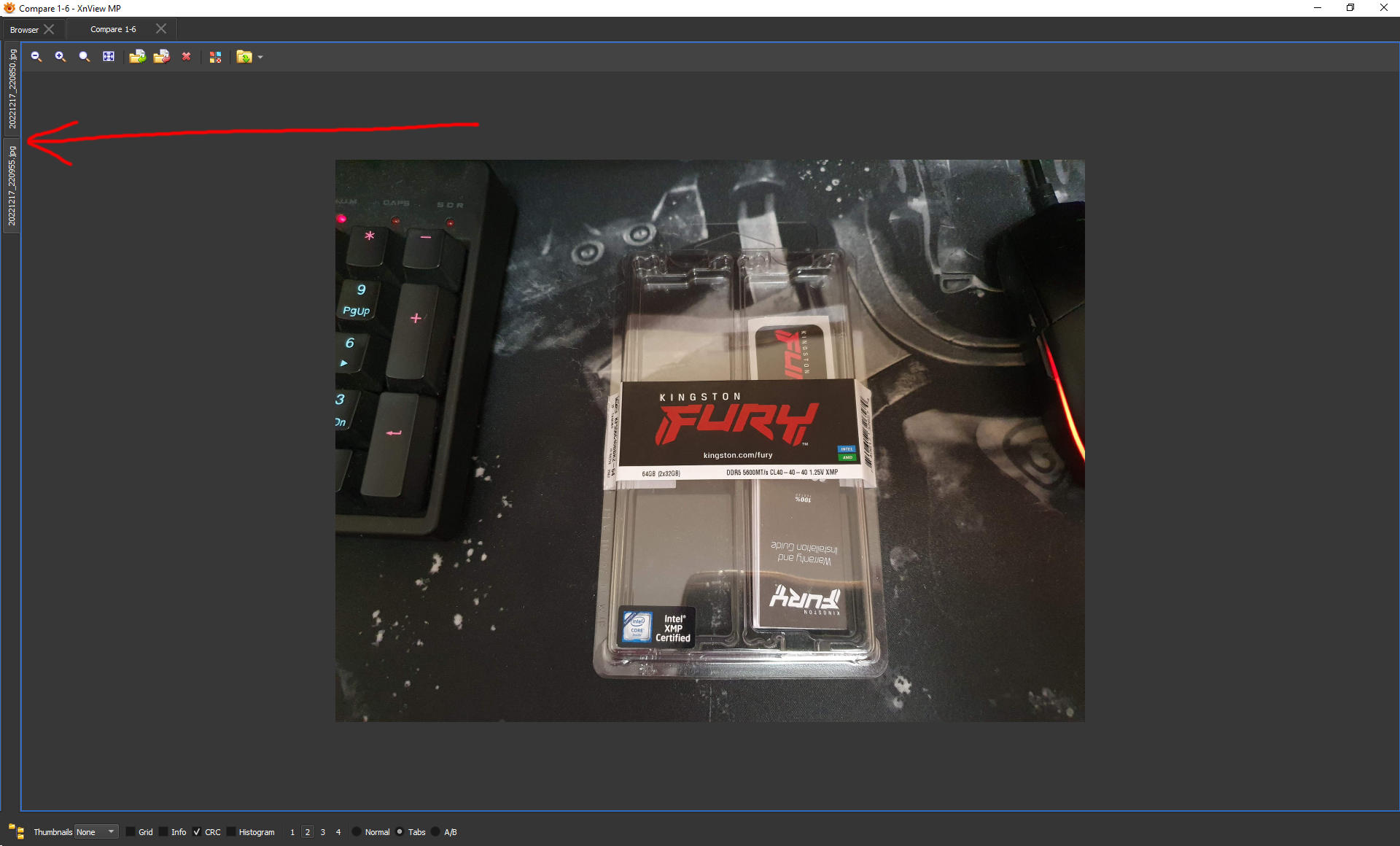 Oops, I posted the thread by mistake before I could write about the 2nd issue. So the 2nd issue is that when I scroll between the tabs of the 2 images I'm comparing, XnView MP will move the view in the upper left corner of the images. This should not happen.