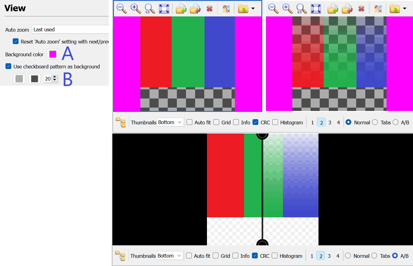 Re: 1.8.0 - compare - A/B mode - does not use bg, transparency settings