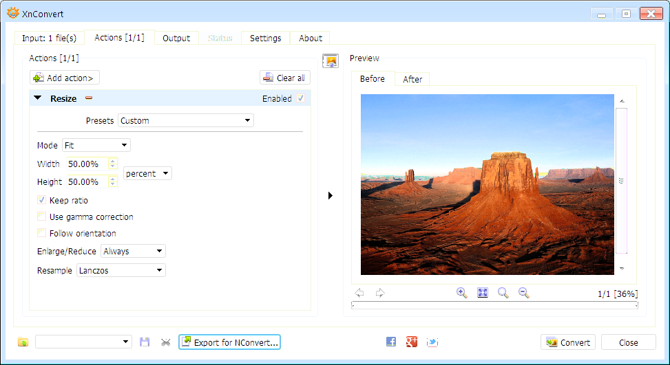 nconvert -ratio -rtype lanczos -resize 50%%%% 50%%