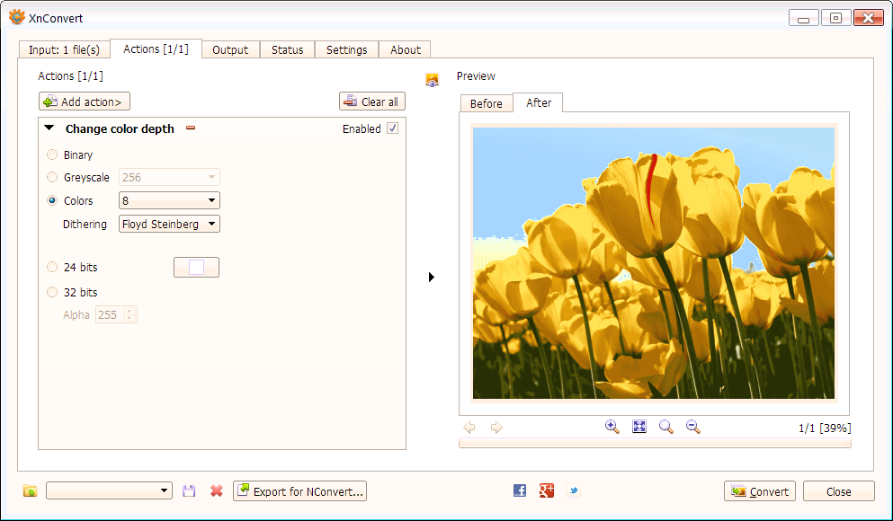 Reducing the color depth of 24-bit JPEGs to 8 colors seems to be broken, the output file has more than 8 colors.