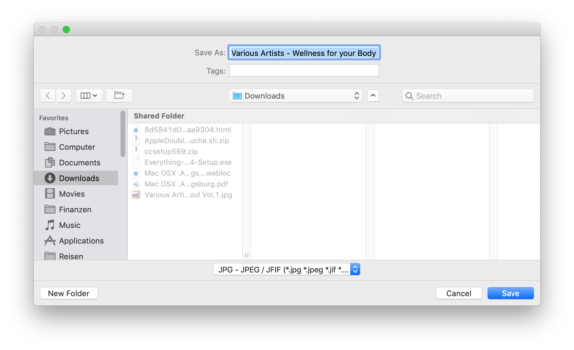 3.) In the file browser on the left, the system directories Documents, Movies, Music, Pictures and Public are shown in English language, thus still untranslated. The German translations for Documents, Movies, Music, Pictures and Public are: Dokumente, Filme, Musik, Bilder and Öffentlich (exactly as correctly shown in the “Finder” of a Mac-computer which is set to German language).