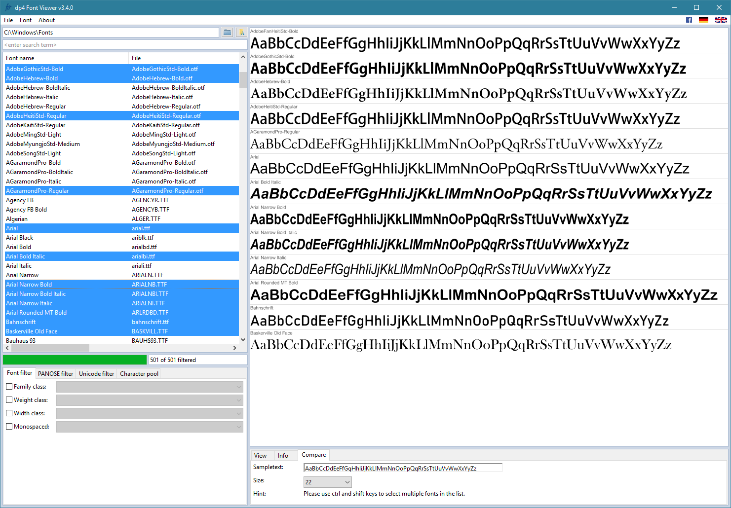 I need a fontviewer for this, but most fontviewers display 1 font at the time.