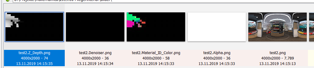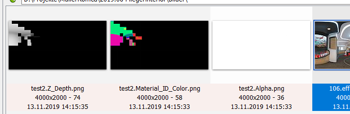 Also some times I have seen that the small size (low MB) output images from V-Ray are shown - for example if I save an image of 4000x2000 than the alpha channel and material ID are shown, but not the large size beauty pass.