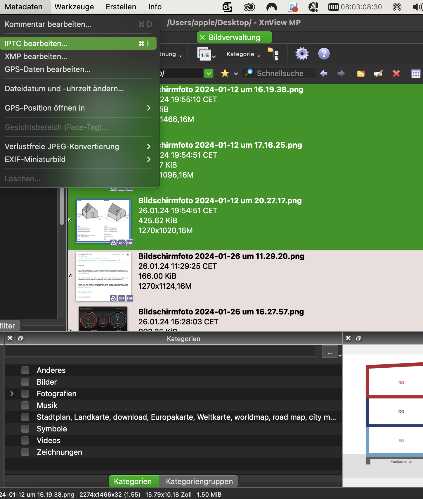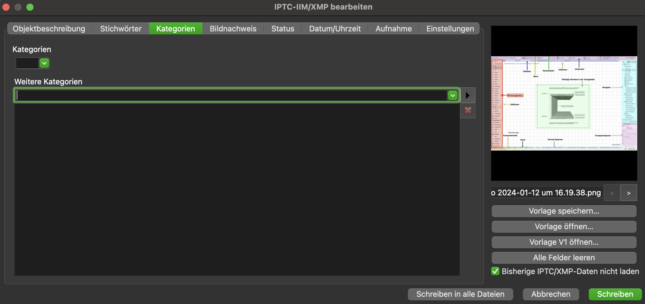 Thanks for the quick response. Unfortunately I could not figure it out yet. Do I need to save an extra IPTC or XMP file for each Photo? Also the files are saved on an external drive and it is over 100GB so I need a quick and scalable solution. I would prefer to not export r import all of these files but rather change the "category" tag to be part of the Photos metadata. Could you give me step-by-step Insctructions on this? I attached screenshots with comments as a documentation of what I've just tried.