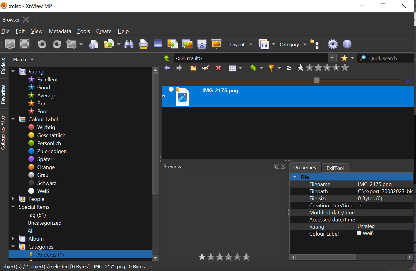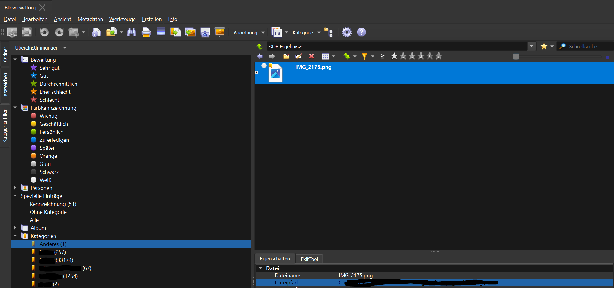 I assinged the categories to the photos when they were saved on my local harddrive, then I transfered all of these photos to an external network drive. Now if I open the category section, I see that there are still photos in each category, but I can't open nor preview them because the path refers to the local harddrive and not the external network drive where the photos are currently stored. Most of the photos names and the folder- and subfolderstructure remains the same, so I only need to change the path from C:/ to the Name of the current external Volume. Else, I could transfer all of the photos back to the local drive so the path refers to the correct location, but that would take a lot of time. I did not knew that the categorys are not assigned to each individual photo. The catalog filter seems to be stored in a seperate file that works only on xnview. Can I edit this file to batch rename the path for each photo?