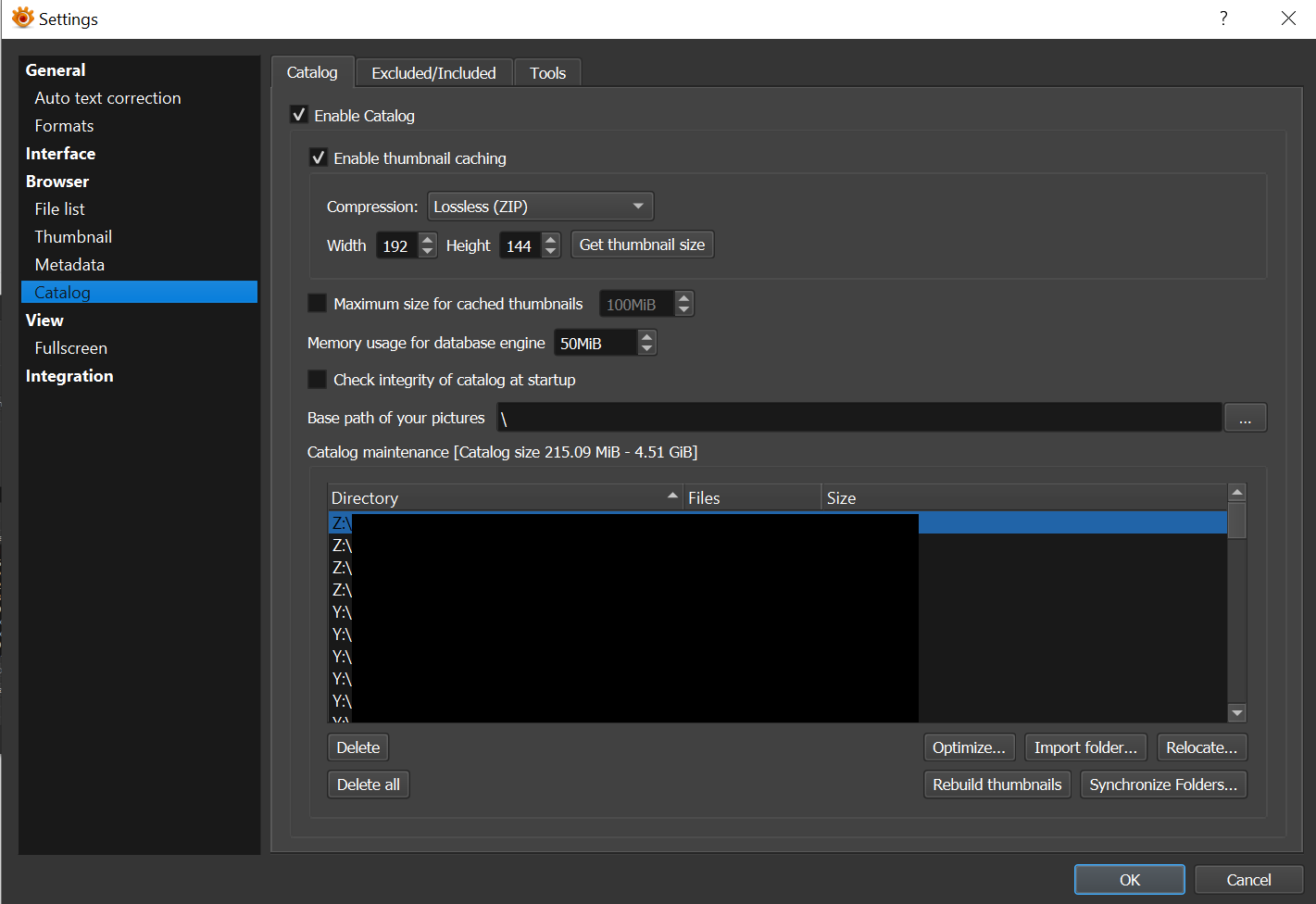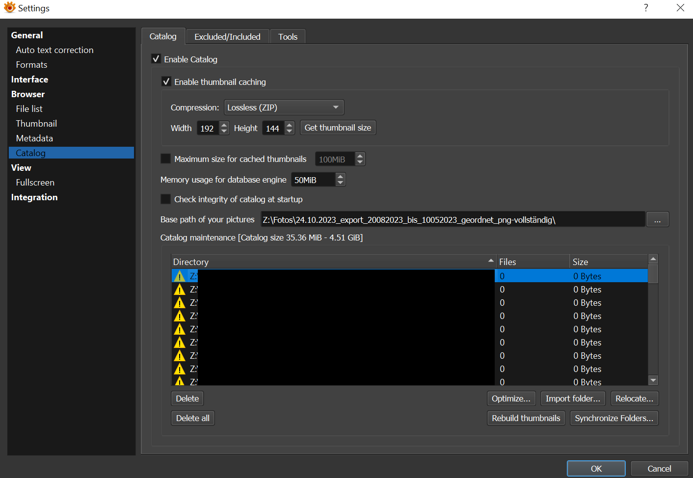 Also in Tools > Settings > Catalog There is no Base path set, but all Directories paths are listed. The new locations, the old locations and even some subfolder locations a lot of entries.