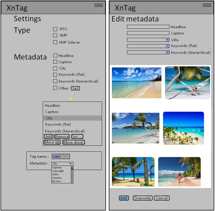 Sinon, l'application est pas mal avec la possibilité d'ajouter tous les tags souhaités gérés par exiftool, le paramétrage est néanmoins fastidieux. J'arrive maintenant à mettre à jour tous les tags que je souhaite et les récupérer correctement sur XnviexMP.