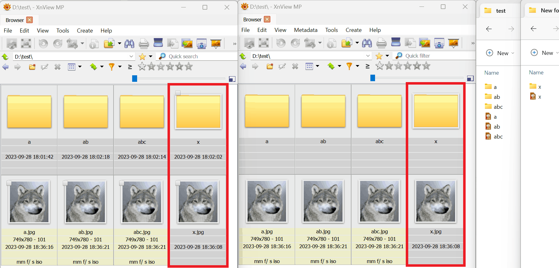 2. (in win file explorer) move x file/folder from current folder (test) to some other folder