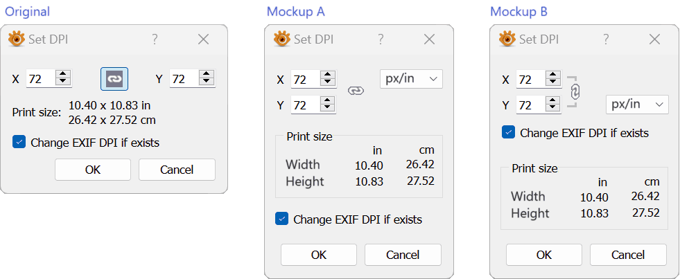 Suggestions for a more intuitive symbol indicating whether the two DPI values change together: