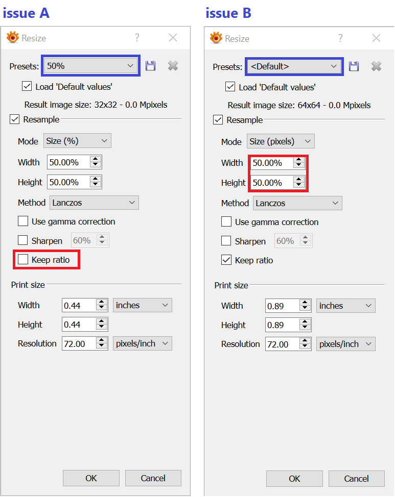'Keep ratio' checkbox automatically unticks