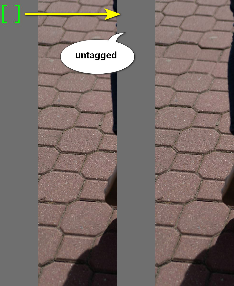 When we select photos, "no/yes" via tagging (which imho is the best and fastest, since the same button causes tag/untag) we would like to focus on the photo, not on the certainty of whether the photo is or is not tagged correctly. Empty brackets (photo without tag) force you to shift your attention to the corner to see the status and be sure. Without brackets (blank space) for an untagged photo, and "anything" for tagged ones, the eye doesn't have to move and focus there because it's easy to see them out of the corner of the eye.