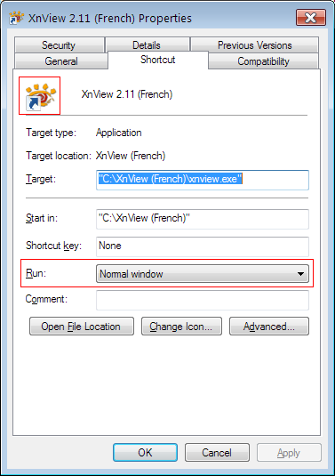 Clique droite sur l’icône raccourci Xnview :
